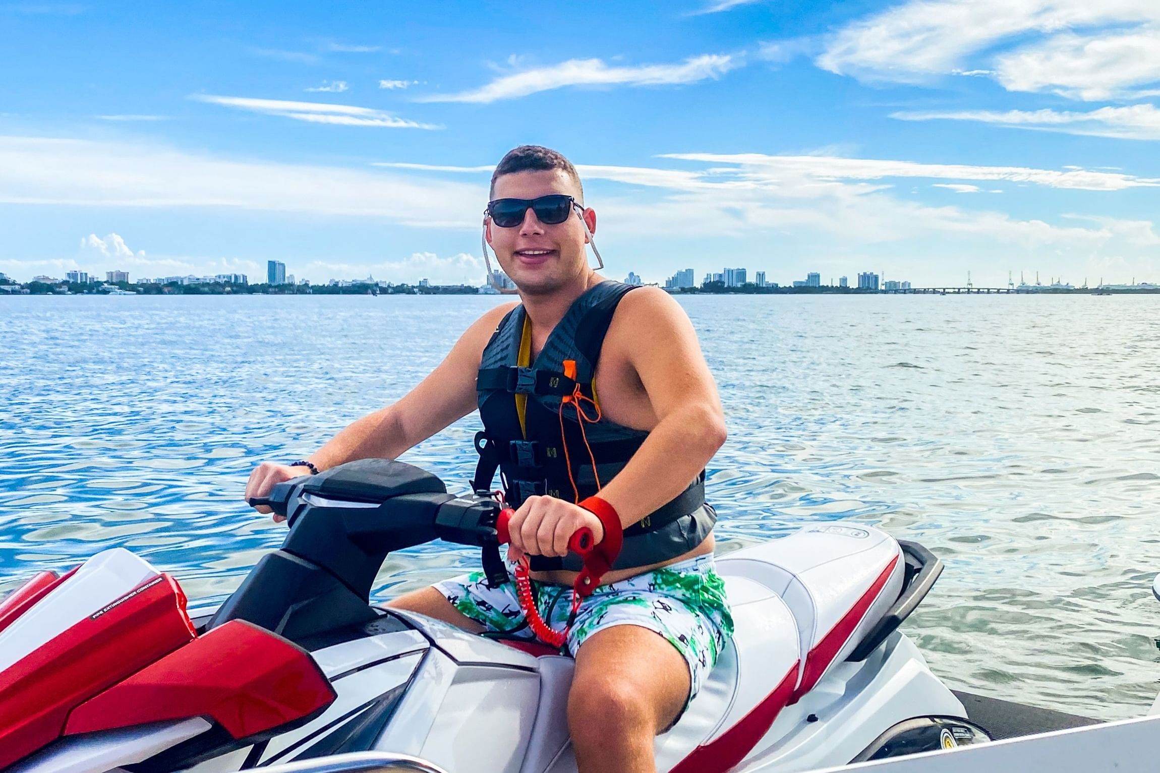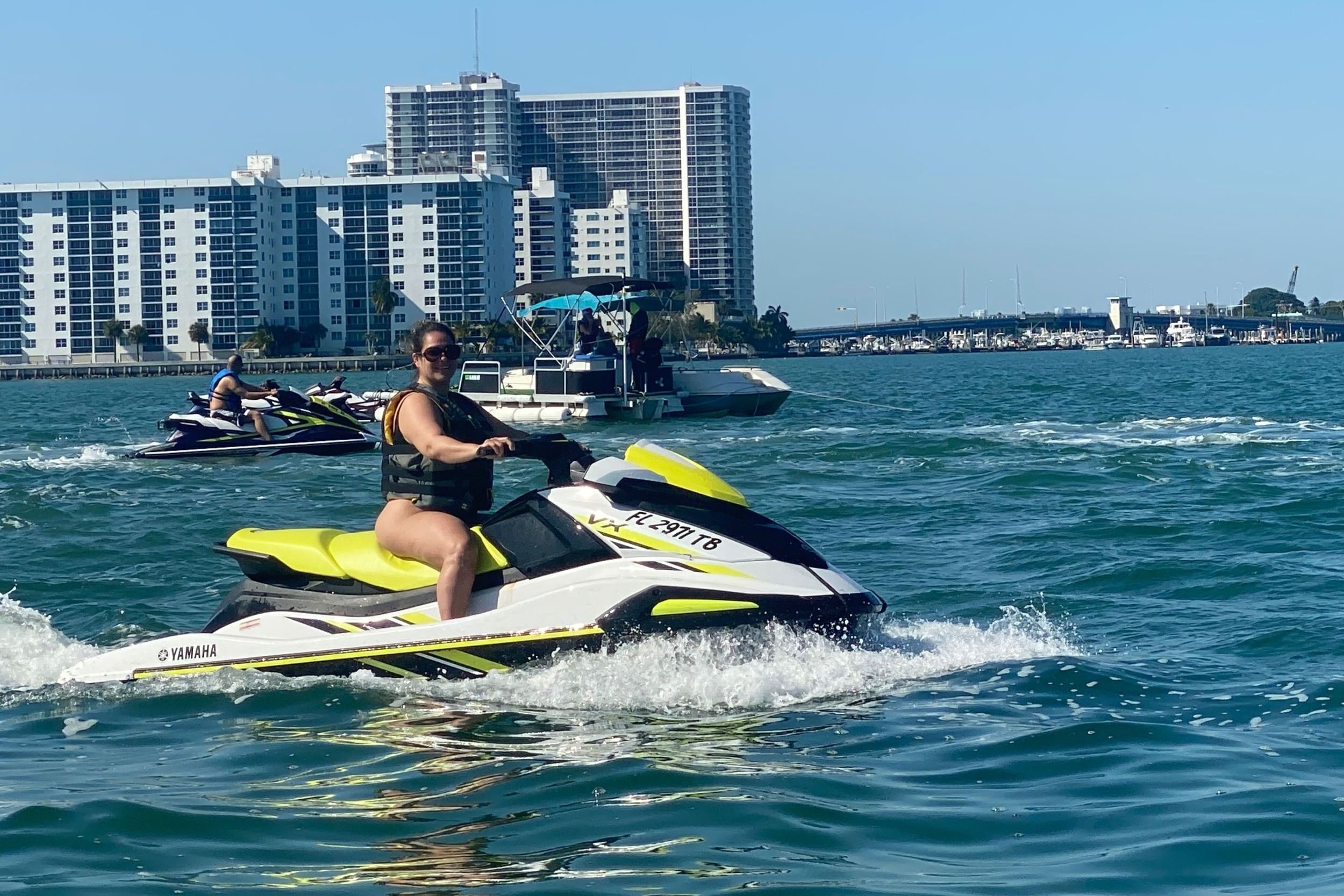Start with a scenic 20-minute pontoon boat ride through the sparkling bay. Relax and soak in views of Miami Beach, lush islands, and the city's stunning skyline on your way to the Jet Ski launch point.